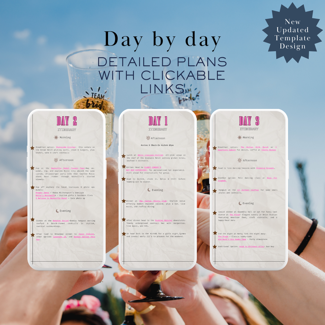 ✔️ Stress-Free Planning – Includes curated recommendations and clickable links to top attractions, dining, and nightlife